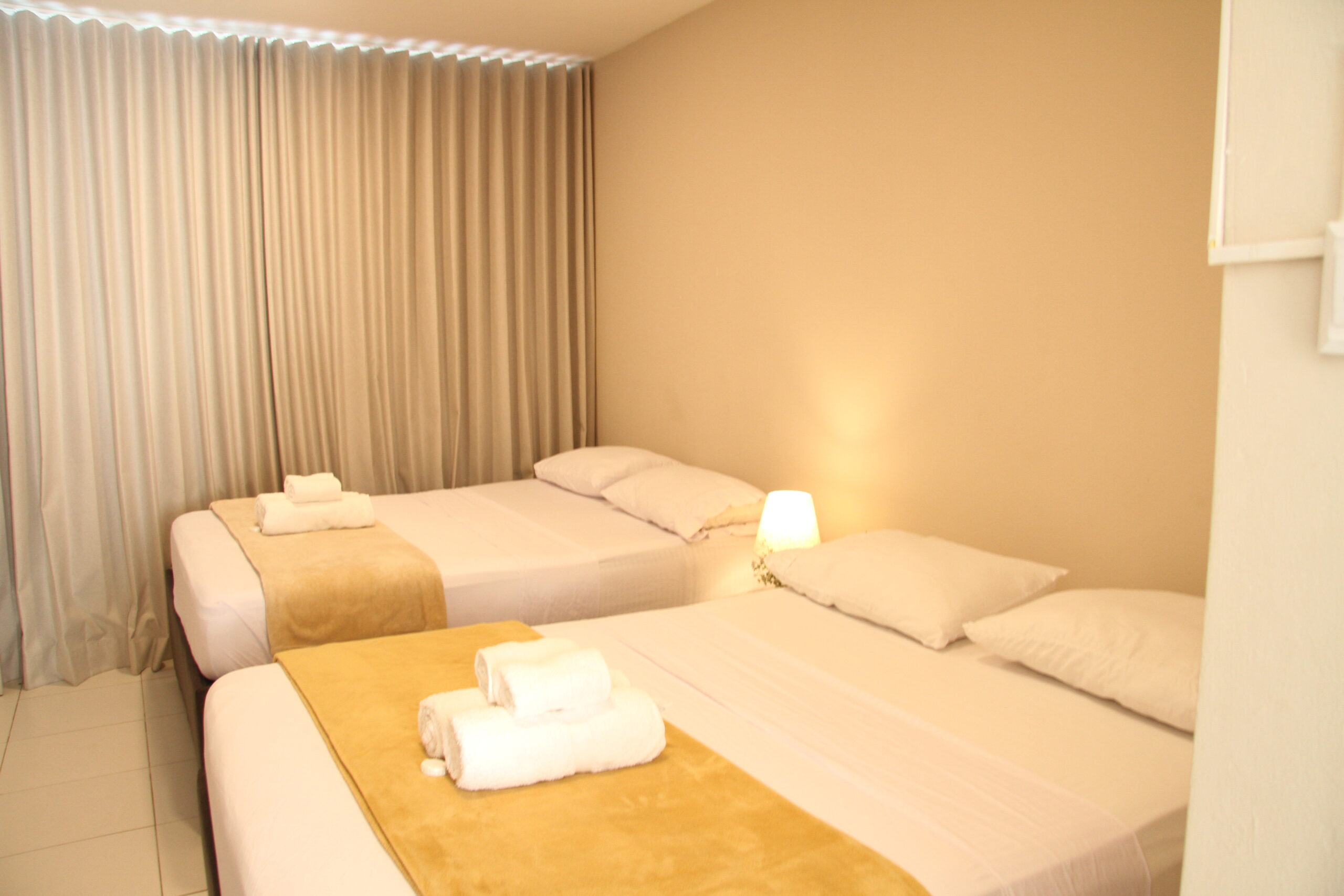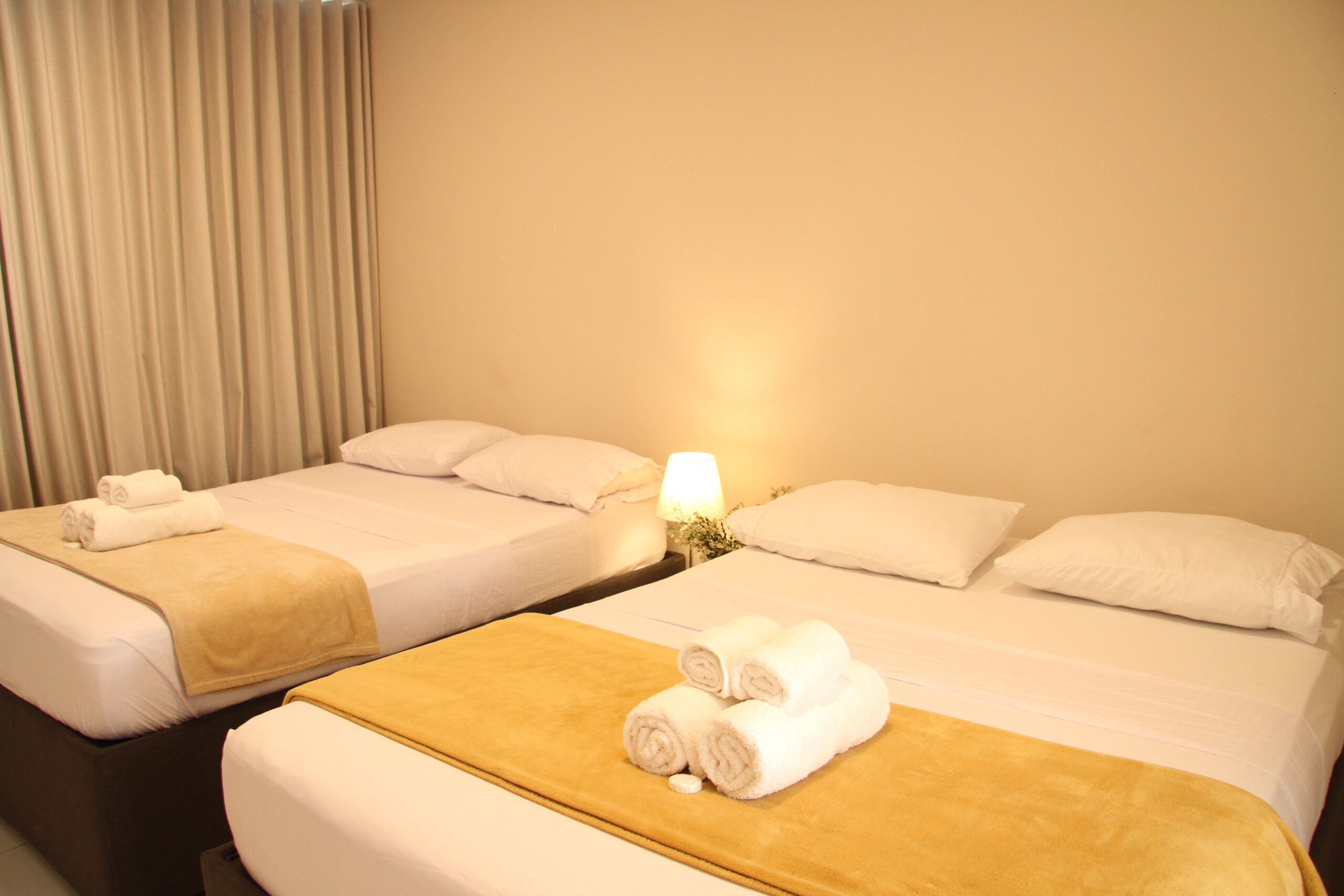 Esta habitación, para máximo cuatro personas, cuenta con dos camas doble de 1,40 cms. equipada con aire acondicionado, wifi, tv satélite, baño privado y artículos de aseo personal. Además de minibar y servicio de limpieza todos los días.
