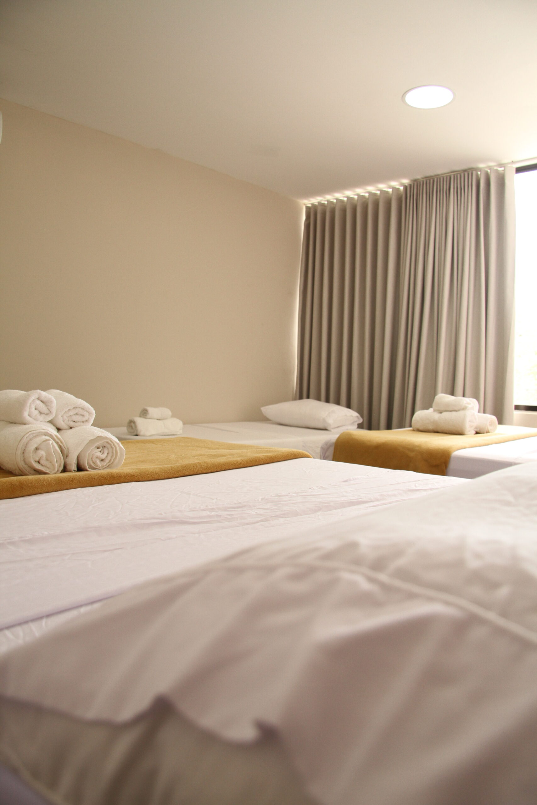 • 3 (dos camas dobles de 1,40 m. y una cama de 1 m.)